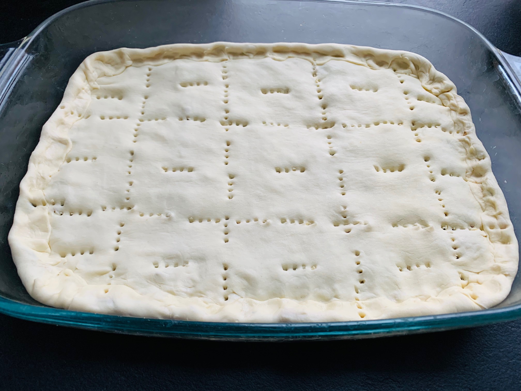 Ein paar “Luftlöcher” mit der Gabel in den Blätterteig stechen.