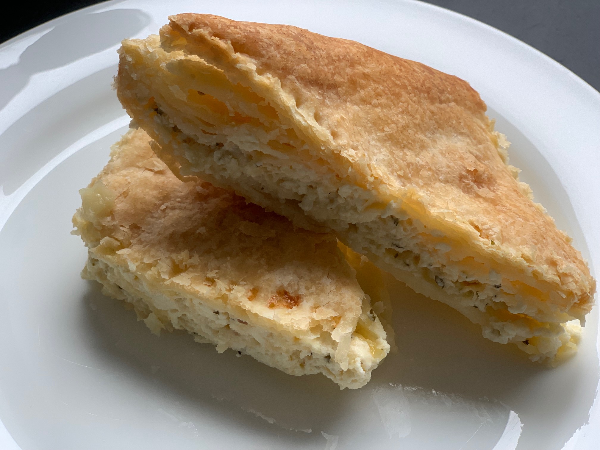 Im Backofen bei 190 Grad Umluft auf dem mittleren Grill ca. 45 Minuten backen, eventuell paar Minuten länger, bis die Tiropita eine schöne Farbe angenommen hat.