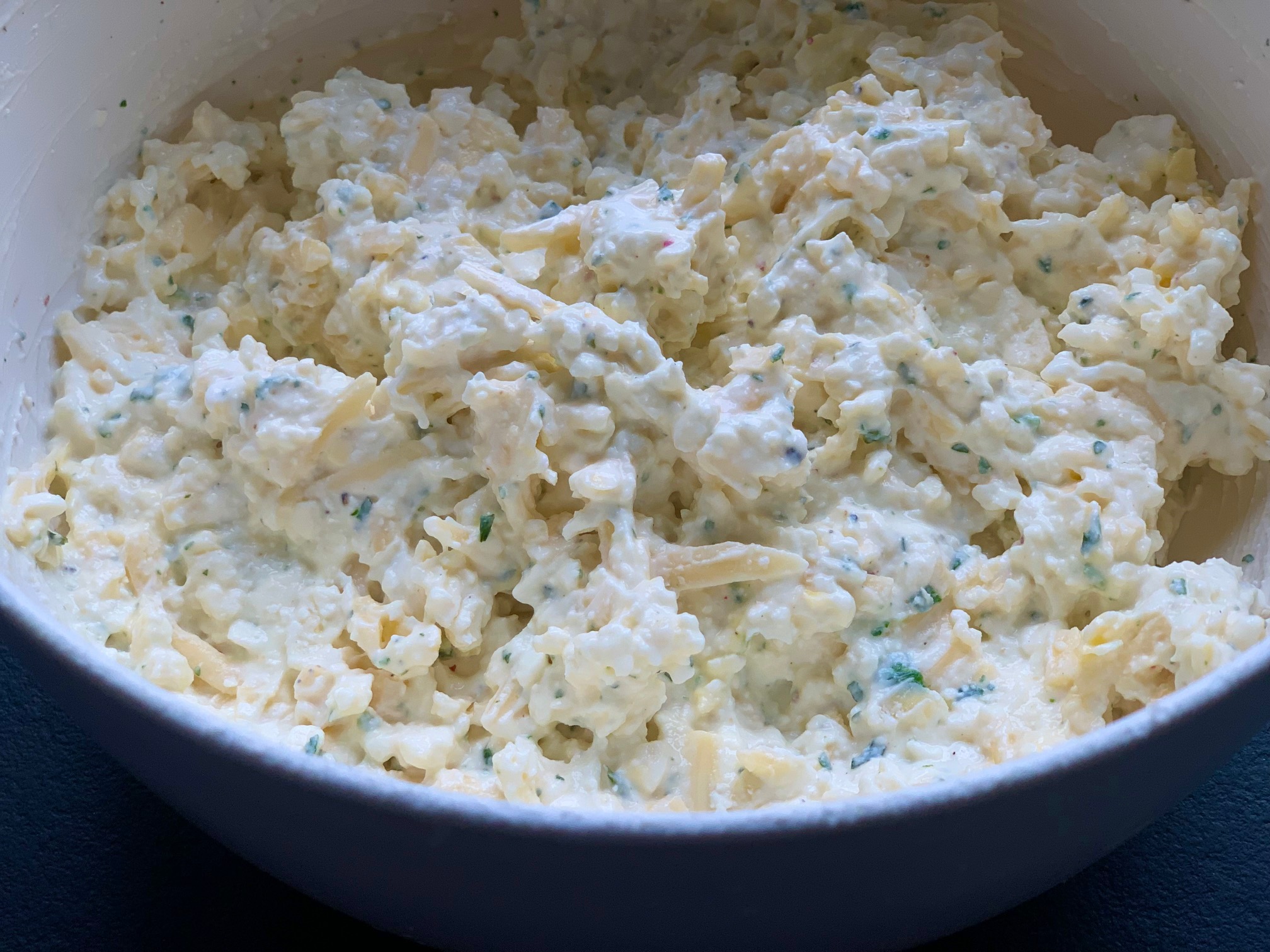 Joghurt-Quark auch in die Schüssel geben und alles gut durchmischen.