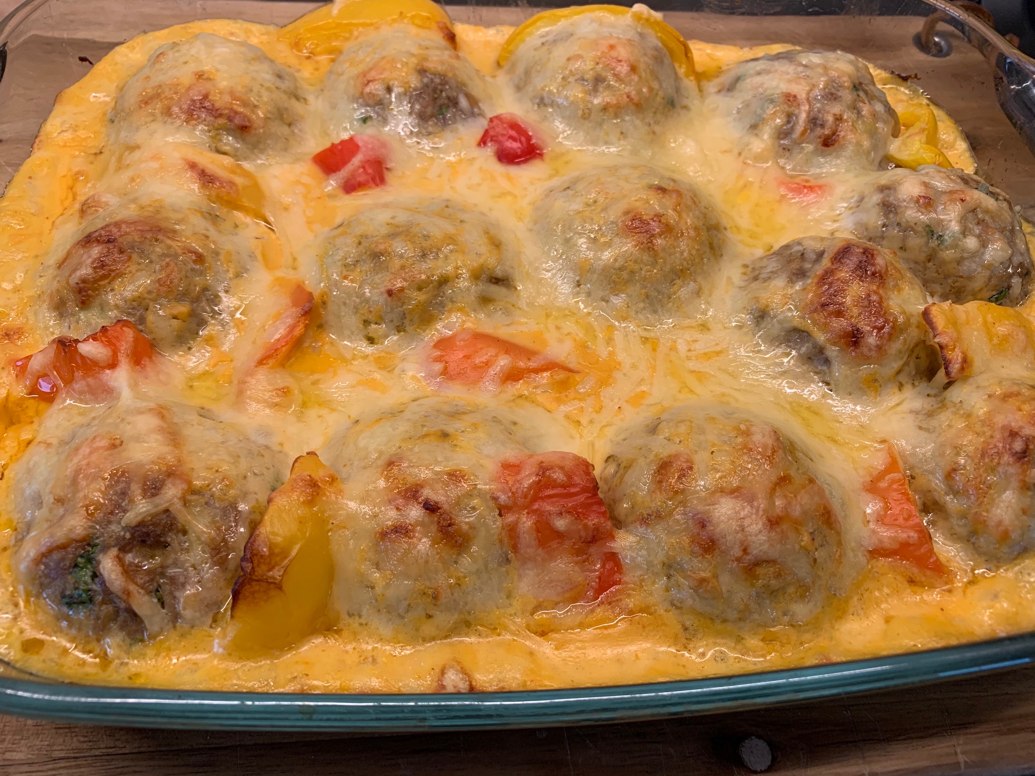 Über die Gemüse-Fleisch-Bällchen gießen.