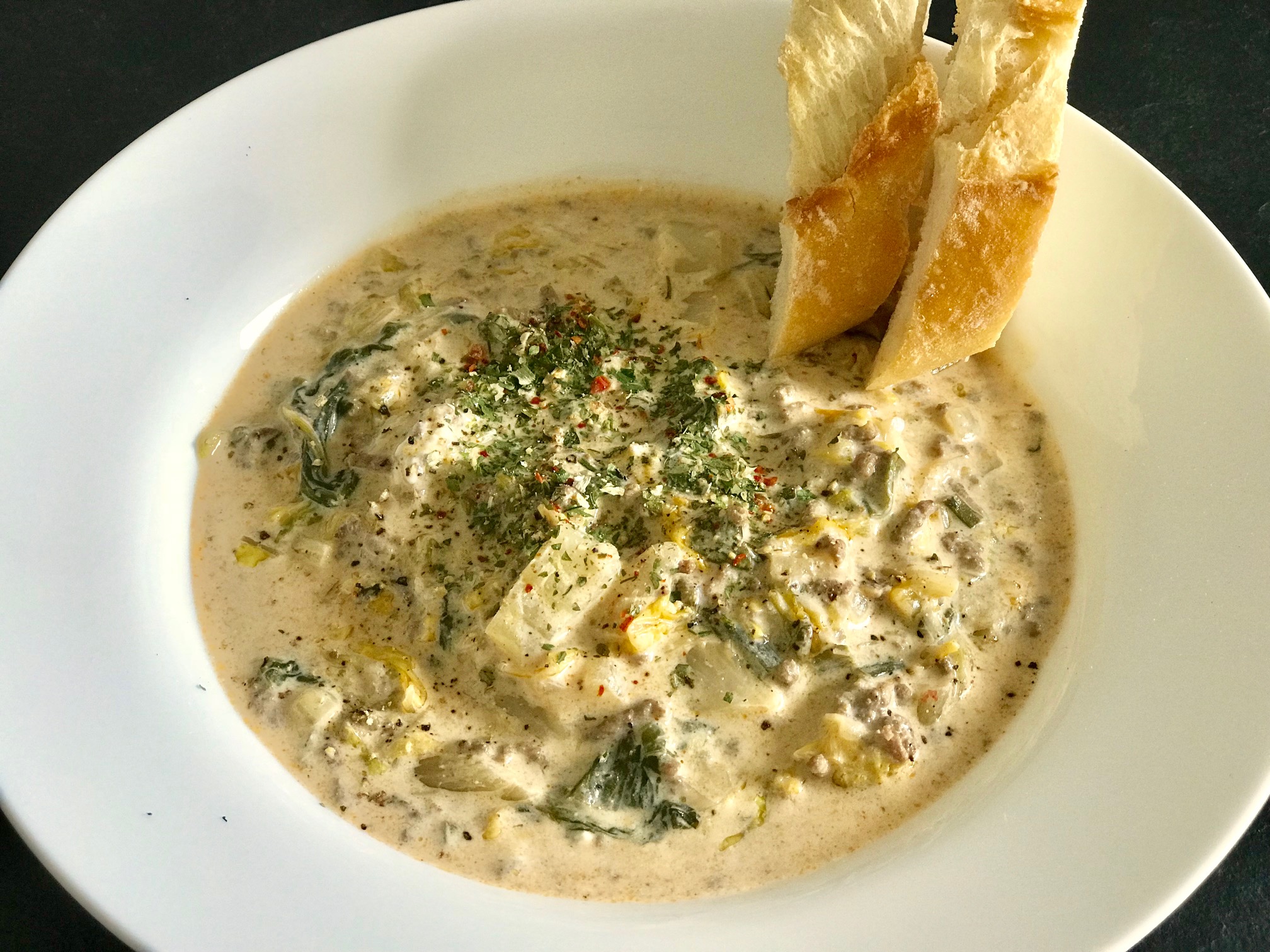 Dies hier ist eine Variante von Lauchsuppe mit Hackfleisch. Prinzipiell kann man fast jedes Gemüse dafür verwenden. So bekommt dieses Gericht ein anderes Gesicht und langweilig wird`s nicht 🙂